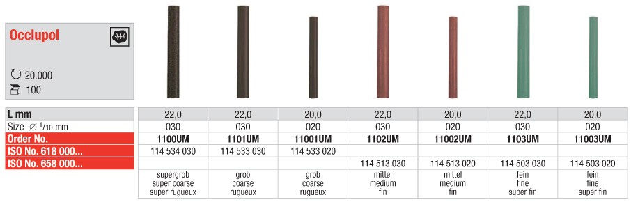Kauflächenpolierer für Chrom-Kobalt-Legierungen und Edelmetalle.