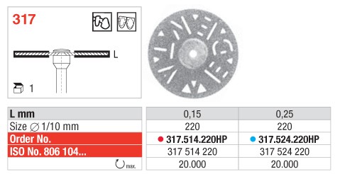 In feiner Diamantkörnung zum Separieren und Konturieren von Keramik.