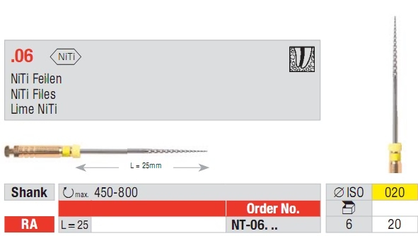 Nickel-Titan Feile 06. Für alle drehmomentbegrenzten Endomotoren.