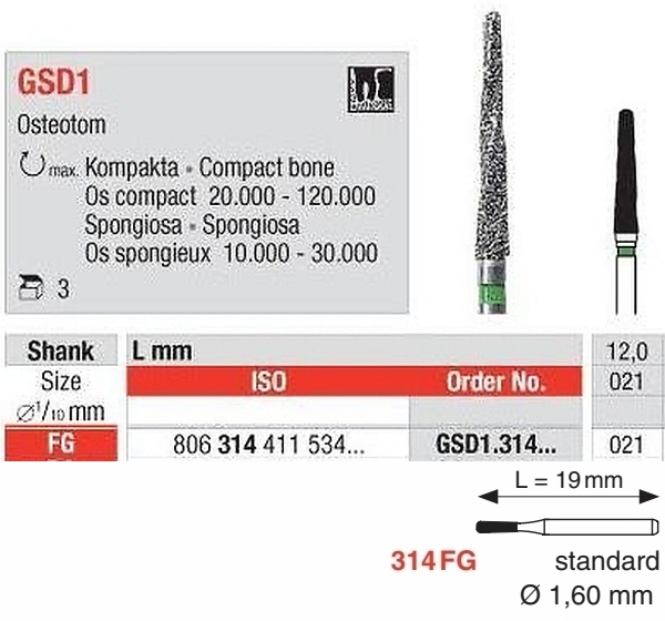 Osteotom- Knochenfräser diamantiert GSD1.314.021